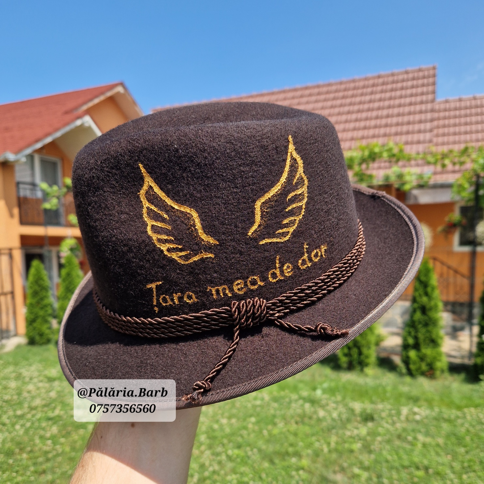 Pentru cei care doresc să își arate iubirea de patrie printr-o inscripție pe pălărie avem modelul 2 aripi însoțite de text. La cerere, se poate picta orice alt model patriotic. Dacă doriți și nume, activați căsuța de mai jos și scrieți numele dorit.